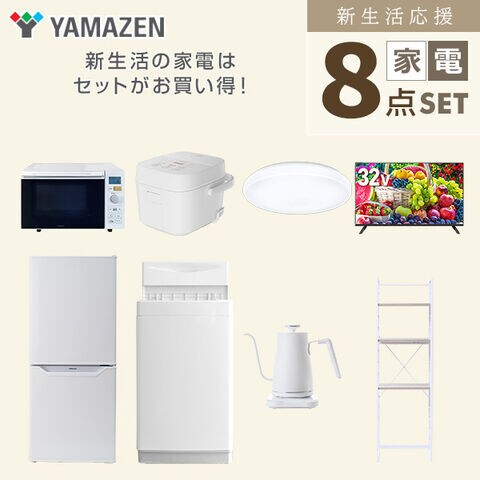 | 山善 YAMAZEN 【新生活応援セット】 家電セット 一人暮らし 新生活家電 8点セット 新品 ( 6kg洗濯機 106L冷蔵庫 オーブンレンジ 炊飯器 シーリングライト 32型液晶テレビ 温調ケトル 家電収納ラック ) |