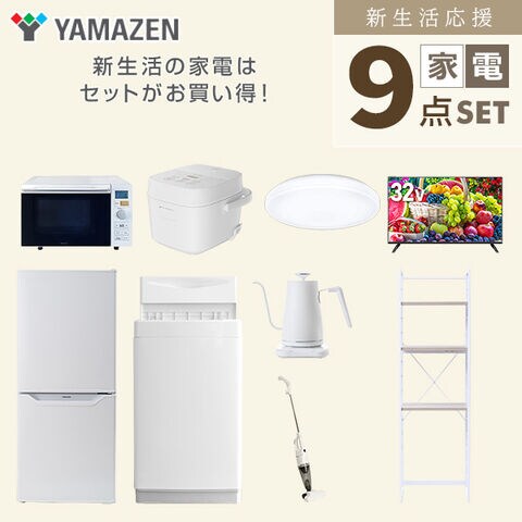 | 山善 YAMAZEN 【新生活応援セット】 家電セット 一人暮らし 新生活家電 9点セット 新品 ( 6kg洗濯機 106L冷蔵庫 オーブンレンジ 炊飯器 シーリングライト 32型液晶テレビ 温調ケトル スティッククリーナー 家電収納ラック ) |