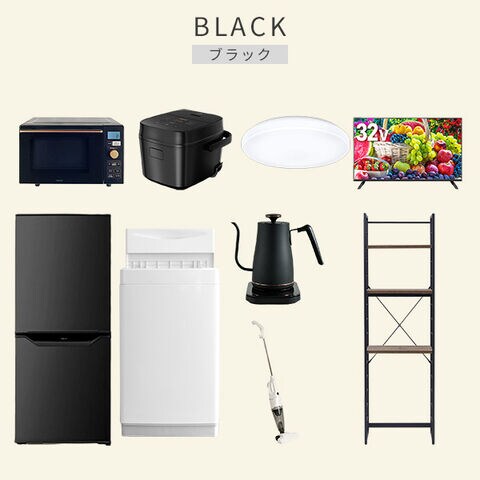 | 商品説明 | 【洗濯機】 ●容量:6.0kg(洗濯時)、1.5kg(風乾燥時) ●8つのコース搭載(標準・毛布・おいそぎ・ドライ・ソフト・つけおき・部屋干し・槽洗浄) 【冷蔵庫】 ●容量:106L(冷蔵室73L/冷凍室33L) ●年間消費電力量:268kWh/年(50Hz/60Hz) 【オーブンレンジ】 ●容量18L、フラットテーブル ●高周波出力:650W(60Hzのみ)/500W/200W相当 【炊飯器】 ●炊飯容量:3.0合炊き ●8種の炊き分けメニュー:省エネ、白米、早炊き、玄米、無洗米、炊込み、おかゆ、温度調理 【シーリングライト】 ●全光束:3600lm ●30分、60分OFFタイマー付き 【32型液晶テレビ】 ●サイズ:32V型 ●2K対応ハイビジョン液晶テレビ 【電気温調ケトル】 ●容量:800ml ●温度設定範囲:60-100度の間で1度単位で温度調整可能 【クリーナー】 ●スティック&ハンディの2WAY ●吸込仕事率:40W 【家電収納ラック】 ●棚やコンセントの高さを、モノに合わせて変更可能 ●2口コンセント付き(計1500Wまで)でよく使う家電や雑貨をすっきりひとまとめ ●ラック以外メーカー保証:1年間 |