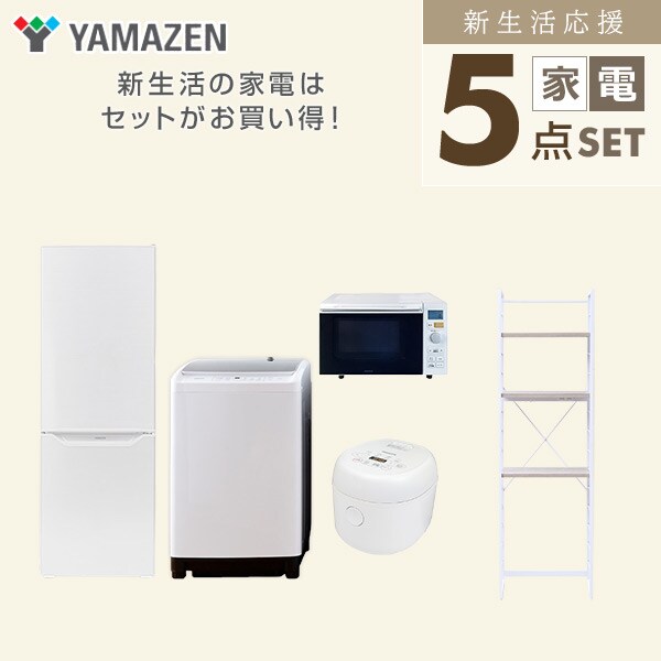 新生活家電セット 5点セット 一人暮らし (8kg洗濯機 173L冷蔵庫 オーブンレンジ 炊飯器 家電収納ラック) ひとり暮らし 単身赴任新 学生 入学 おすすめ 山善 YAMAZEN【送料無料】
