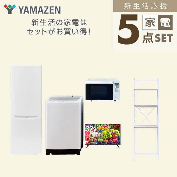 新生活家電セット 5点セット 一人暮らし (8kg洗濯機 173L冷蔵庫 オーブンレンジ 32型液晶テレビ 家電収納ラック) ひとり暮らし 単身赴任新 学生 入学 おすすめ 山善 YAMAZEN【送料無料】