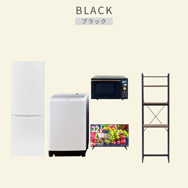 | 商品説明 | 【洗濯機】 ●容量:8.0kg(洗濯時)、1.5kg(風乾燥時) ●8つのコース搭載(標準・毛布・おいそぎ・ドライ・ソフト・つけおき・部屋干し・槽洗浄) 【冷蔵庫】 ●容量:173L(冷蔵室121L/冷凍室52L) ●年間消費電力量:250kWh/年(50Hz/60Hz) 【オーブンレンジ】 ●容量18L、フラットテーブル ●高周波出力:650W(60Hzのみ)/500W/200W相当 【32型液晶テレビ】 ●サイズ:32V型 ●2K対応ハイビジョン液晶テレビ 【家電収納ラック】 ●棚やコンセントの高さを、モノに合わせて変更可能 ●2口コンセント付き(計1500Wまで)でよく使う家電や雑貨をすっきりひとまとめ ●ラック以外メーカー保証:1年間 |