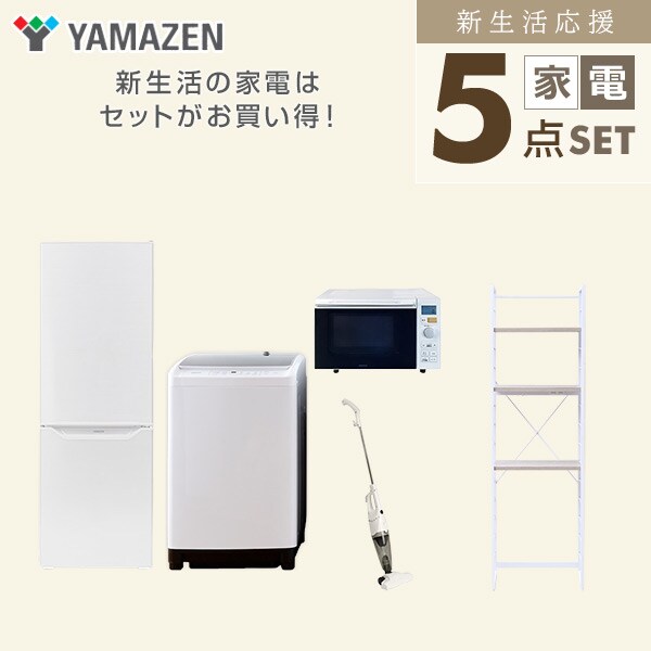 新生活家電セット 5点セット 一人暮らし (8kg洗濯機 173L冷蔵庫 オーブンレンジ スティッククリーナー 家電収納ラック) ひとり暮らし 単身赴任新 学生 入学 おすすめ 山善 YAMAZEN【送料無料】