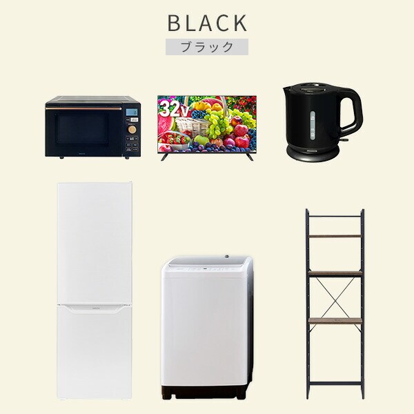 | 商品説明 | 【洗濯機】 ●容量:8.0kg(洗濯時)、1.5kg(風乾燥時) ●8つのコース搭載(標準・毛布・おいそぎ・ドライ・ソフト・つけおき・部屋干し・槽洗浄) 【冷蔵庫】 ●容量:173L(冷蔵室121L/冷凍室52L) ●年間消費電力量:250kWh/年(50Hz/60Hz) 【オーブンレンジ】 ●容量18L、フラットテーブル ●高周波出力:650W(60Hzのみ)/500W/200W相当 【32型液晶テレビ】 ●サイズ:32V型 ●2K対応ハイビジョン液晶テレビ 【電気ケトル】 ●容量:1.0L ●空焚き防止機能搭載 【家電収納ラック】 ●棚やコンセントの高さを、モノに合わせて変更可能 ●2口コンセント付き(計1500Wまで)でよく使う家電や雑貨をすっきりひとまとめ ●ラック以外メーカー保証:1年間 |