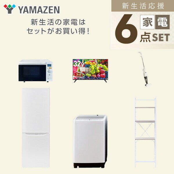 新生活家電セット 6点セット 一人暮らし (8kg洗濯機 173L冷蔵庫 オーブンレンジ 32型液晶テレビ スティッククリーナー 家電収納ラック) ひとり暮らし 単身赴任新 学生 入学 おすすめ 山善 YAMAZEN【送料無料】