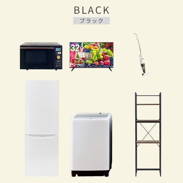 | 商品説明 | 【洗濯機】 ●容量:8.0kg(洗濯時)、1.5kg(風乾燥時) ●8つのコース搭載(標準・毛布・おいそぎ・ドライ・ソフト・つけおき・部屋干し・槽洗浄) 【冷蔵庫】 ●容量:173L(冷蔵室121L/冷凍室52L) ●年間消費電力量:250kWh/年(50Hz/60Hz) 【オーブンレンジ】 ●容量18L、フラットテーブル ●高周波出力:650W(60Hzのみ)/500W/200W相当 【32型液晶テレビ】 ●サイズ:32V型 ●2K対応ハイビジョン液晶テレビ 【クリーナー】 ●スティック&ハンディの2WAY ●吸込仕事率:40W 【家電収納ラック】 ●棚やコンセントの高さを、モノに合わせて変更可能 ●2口コンセント付き(計1500Wまで)でよく使う家電や雑貨をすっきりひとまとめ ●ラック以外メーカー保証:1年間 |