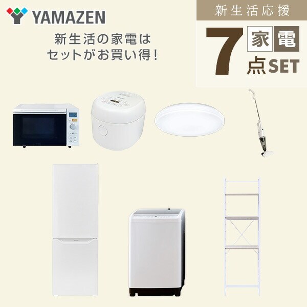 新生活家電セット 7点セット 一人暮らし (8kg洗濯機 173L冷蔵庫 オーブンレンジ 炊飯器 シーリングライト スティッククリーナー 家電収納ラック) ひとり暮らし 単身赴任新 学生 入学 おすすめ 山善 YAMAZEN【送料無料】
