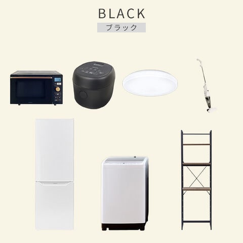 | 商品説明 | 【洗濯機】 ●容量:8.0kg(洗濯時)、1.5kg(風乾燥時) ●8つのコース搭載(標準・毛布・おいそぎ・ドライ・ソフト・つけおき・部屋干し・槽洗浄) 【冷蔵庫】 ●容量:173L(冷蔵室121L/冷凍室52L) ●年間消費電力量:250kWh/年(50Hz/60Hz) 【オーブンレンジ】 ●容量18L、フラットテーブル ●高周波出力:650W(60Hzのみ)/500W/200W相当 【炊飯器】 ●炊飯容量:3.0合炊き ●11種の炊き分けメニュー:白米ふつう、白米やわらかめ、白米かため、省エネ、早炊き、お湯炊き、パン、玄米、雑穀米、おかゆ、炊込み 【シーリングライト】 ●全光束:3500lm ●30分、60分OFFタイマー付き 【クリーナー】 ●スティック&ハンディの2WAY ●吸込仕事率:40W 【家電収納ラック】 ●棚やコンセントの高さを、モノに合わせて変更可能 ●2口コンセント付き(計1500Wまで)でよく使う家電や雑貨をすっきりひとまとめ ●ラック以外メーカー保証:1年間 ※2023年4月より炊飯器の型番を YJR-M05からYJR-DM051へ変更しています。 |