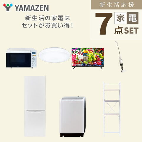 新生活家電セット 7点セット 一人暮らし (8kg洗濯機 173L冷蔵庫 オーブンレンジ シーリングライト 32型液晶テレビ スティッククリーナー 家電収納ラック) ひとり暮らし 単身赴任新 学生 入学 おすすめ 山善 YAMAZEN【送料無料】