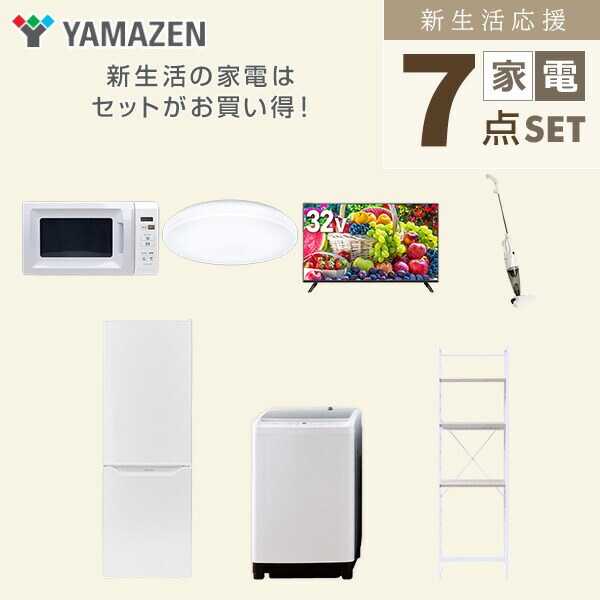 新生活家電セット 7点セット 一人暮らし (8kg洗濯機 173L冷蔵庫 電子レンジ シーリングライト 32型液晶テレビ スティッククリーナー 家電収納ラック) ひとり暮らし 単身赴任新 学生 入学 おすすめ 山善 YAMAZEN【送料無料】
