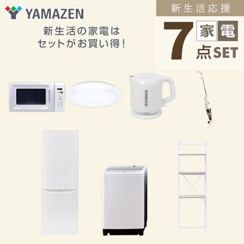 | 山善 YAMAZEN 新生活家電セット 7点セット 一人暮らし ( 8kg洗濯機 173L冷蔵庫 電子レンジ シーリングライト 電気ケトル スティッククリーナー 家電収納ラック ) |
