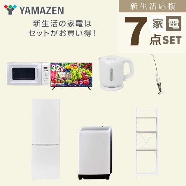 新生活家電セット 7点セット 一人暮らし (8kg洗濯機 173L冷蔵庫 電子レンジ 32型液晶テレビ 電気ケトル スティッククリーナー 家電収納ラック) ひとり暮らし 単身赴任新 学生 入学 おすすめ 山善 YAMAZEN【送料無料】
