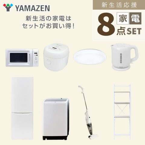 新生活家電セット 8点セット 一人暮らし (8kg洗濯機 173L冷蔵庫 電子レンジ 炊飯器 シーリングライト 電気ケトル スティッククリーナー 家電収納ラック) ひとり暮らし 単身赴任新 学生 入学 おすすめ 山善 YAMAZEN【送料無料】