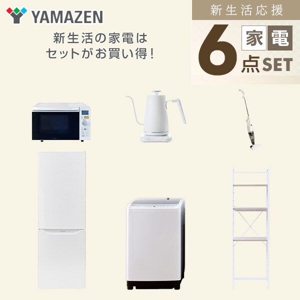 新生活家電セット 6点セット 一人暮らし (8kg洗濯機 173L冷蔵庫 オーブンレンジ 温調ケトル スティッククリーナー 家電収納ラック) ひとり暮らし 単身赴任新 学生 入学 おすすめ 山善 YAMAZEN【送料無料】