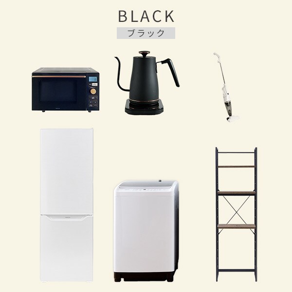 | 商品説明 | 【洗濯機】 ●容量:8.0kg(洗濯時)、1.5kg(風乾燥時) ●8つのコース搭載(標準・毛布・おいそぎ・ドライ・ソフト・つけおき・部屋干し・槽洗浄) 【冷蔵庫】 ●容量:173L(冷蔵室121L/冷凍室52L) ●年間消費電力量:250kWh/年(50Hz/60Hz) 【オーブンレンジ】 ●容量18L、フラットテーブル ●高周波出力:650W(60Hzのみ)/500W/200W相当 【電気温調ケトル】 ●容量:800ml ●温度設定範囲:60-100度の間で1度単位で温度調整可能 【クリーナー】 ●スティック&ハンディの2WAY ●吸込仕事率:40W 【家電収納ラック】 ●棚やコンセントの高さを、モノに合わせて変更可能 ●2口コンセント付き(計1500Wまで)でよく使う家電や雑貨をすっきりひとまとめ ●ラック以外メーカー保証:1年間 |