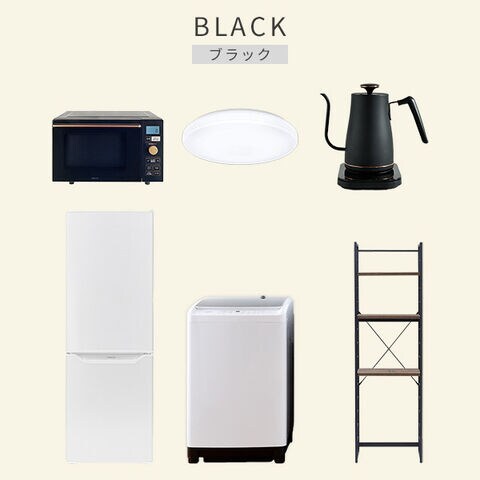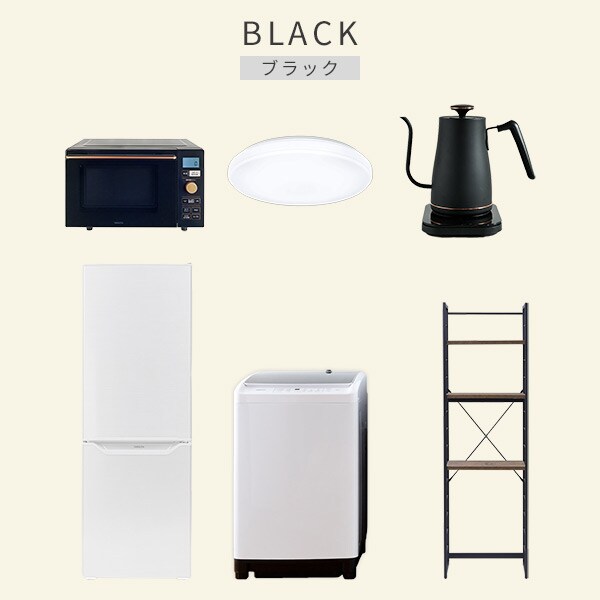 | 商品説明 | 【洗濯機】 ●容量:8.0kg(洗濯時)、1.5kg(風乾燥時) ●8つのコース搭載(標準・毛布・おいそぎ・ドライ・ソフト・つけおき・部屋干し・槽洗浄) 【冷蔵庫】 ●容量:173L(冷蔵室121L/冷凍室52L) ●年間消費電力量:250kWh/年(50Hz/60Hz) 【オーブンレンジ】 ●容量18L、フラットテーブル ●高周波出力:650W(60Hzのみ)/500W/200W相当 【シーリングライト】 ●全光束:3500lm ●30分、60分OFFタイマー付き 【電気温調ケトル】 ●容量:800ml ●温度設定範囲:60-100度の間で1度単位で温度調整可能 【家電収納ラック】 ●棚やコンセントの高さを、モノに合わせて変更可能 ●2口コンセント付き(計1500Wまで)でよく使う家電や雑貨をすっきりひとまとめ ●ラック以外メーカー保証:1年間 |