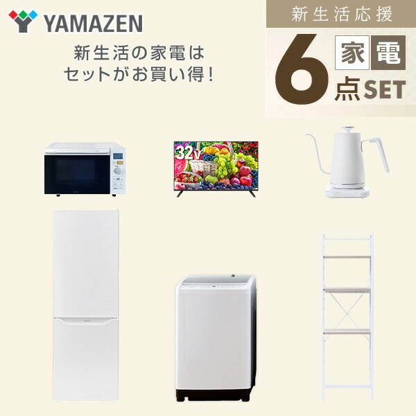 新生活家電セット 6点セット 一人暮らし (8kg洗濯機 173L冷蔵庫 オーブンレンジ 32型液晶テレビ 温調ケトル 家電収納ラック) ひとり暮らし 単身赴任新 学生 入学 おすすめ 山善 YAMAZEN【送料無料】