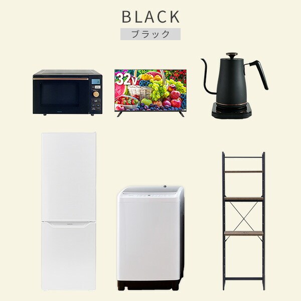 | 商品説明 | 【洗濯機】 ●容量:8.0kg(洗濯時)、1.5kg(風乾燥時) ●8つのコース搭載(標準・毛布・おいそぎ・ドライ・ソフト・つけおき・部屋干し・槽洗浄) 【冷蔵庫】 ●容量:173L(冷蔵室121L/冷凍室52L) ●年間消費電力量:250kWh/年(50Hz/60Hz) 【オーブンレンジ】 ●容量18L、フラットテーブル ●高周波出力:650W(60Hzのみ)/500W/200W相当 【32型液晶テレビ】 ●サイズ:32V型 ●2K対応ハイビジョン液晶テレビ 【電気温調ケトル】 ●容量:800ml ●温度設定範囲:60-100度の間で1度単位で温度調整可能 【家電収納ラック】 ●棚やコンセントの高さを、モノに合わせて変更可能 ●2口コンセント付き(計1500Wまで)でよく使う家電や雑貨をすっきりひとまとめ ●ラック以外メーカー保証:1年間 |