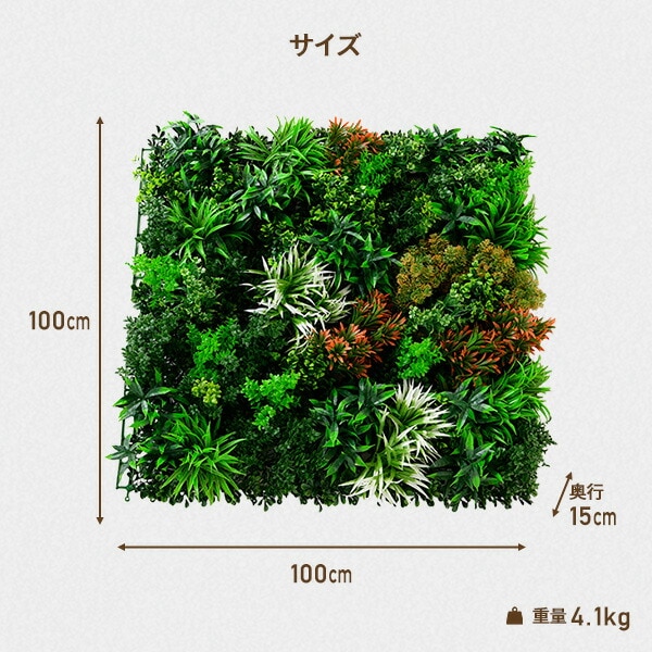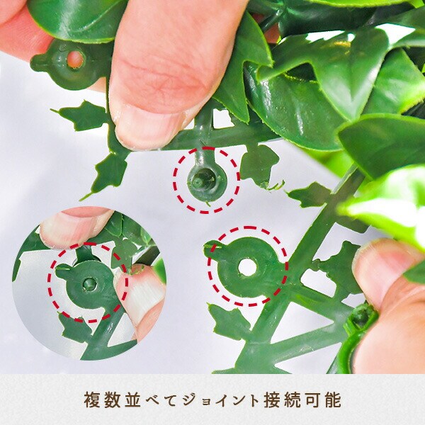 | 商品説明 | ●お家の中でも外でも楽しめるウォールグリーン ●高級感のある「プロ」シリーズ ●お部屋やお庭の雰囲気に合わせて2デザインをご用意 ●リアルさを追求した完成度の高いリーフ形状 ●人工造花のためお手入れ不要で虫の心配もありません ●フェイクリーフなので育てる手間要らず ●設置はS字フックや結束バンドで固定するだけ ※結束バンド等は付属しておりません ●複数並べてジョイント接続可能 |