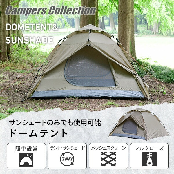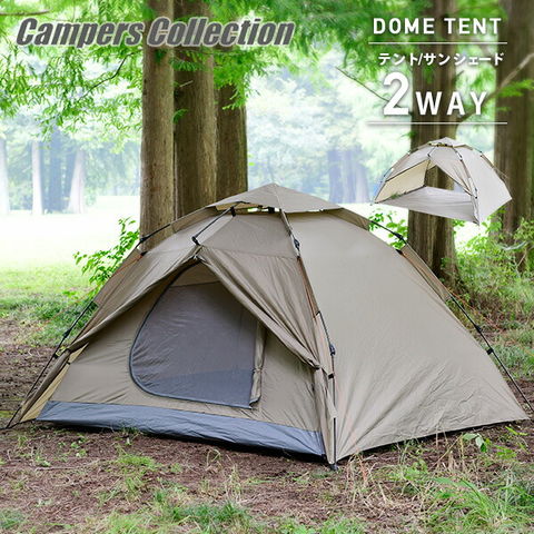 ワンタッチドームテント&サンシェード ODTS-2(KH) テント ファミリー 宿泊 ドームテント 日除け 日よけ 山善 YAMAZEN キャンパーズコレクション 【送料無料】
