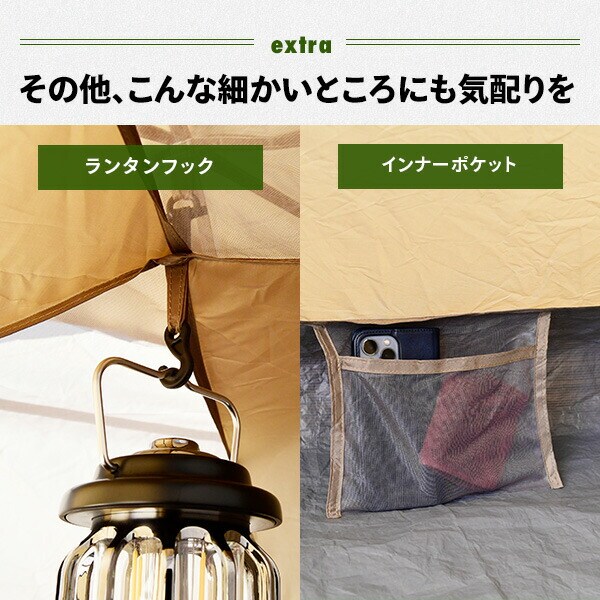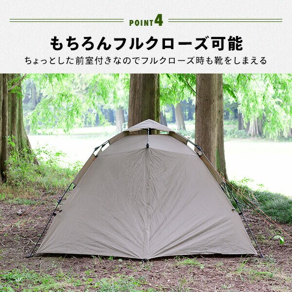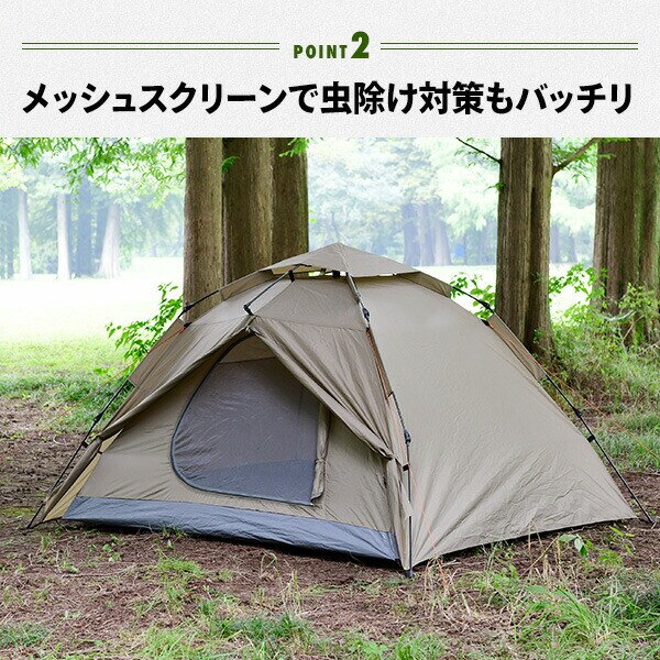 | 商品説明 | ●組み立て簡単ワンタッチテント ●ワンタッチドームテント&サンシェードの2WAY仕様 ●付属品:サンシェード、インナーテント、グランドシート、ペグ10本、ガイドロープ4本、キャリーバッグ ●耐水圧:1500mm ●メッシュスクリーンで虫除け対策もバッチリ! ●もちろんフルクローズも可能 ●ランタンフック付き ●インナーポケット付き ●収納時サイズ:幅26×奥行26×高さ80cm |