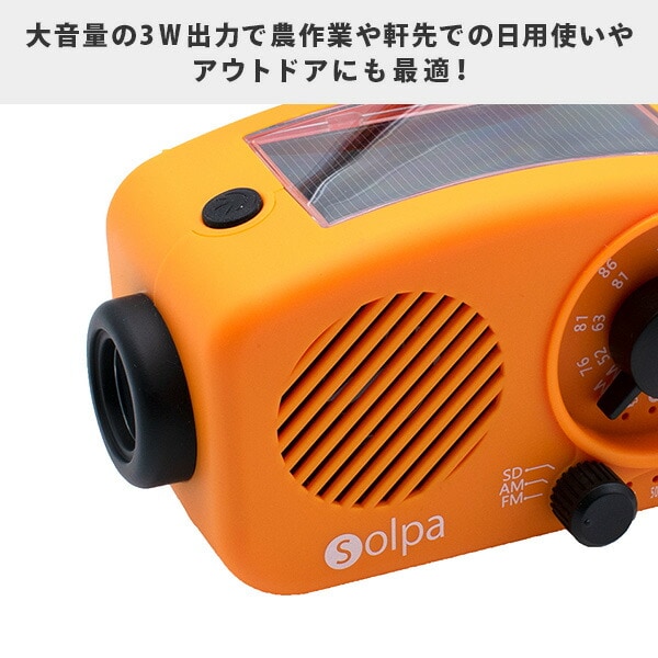 手回し/ソーラー蓄電ラジオ チャージオ・ミニ 防災ラジオ SL-088 オレンジ 手動 太陽光 発電 充電 災害時 アウトドア 蓄電池 懐中電灯 AM/FMラジオ メディア再生機能 クマザキエイム 【送料無料】