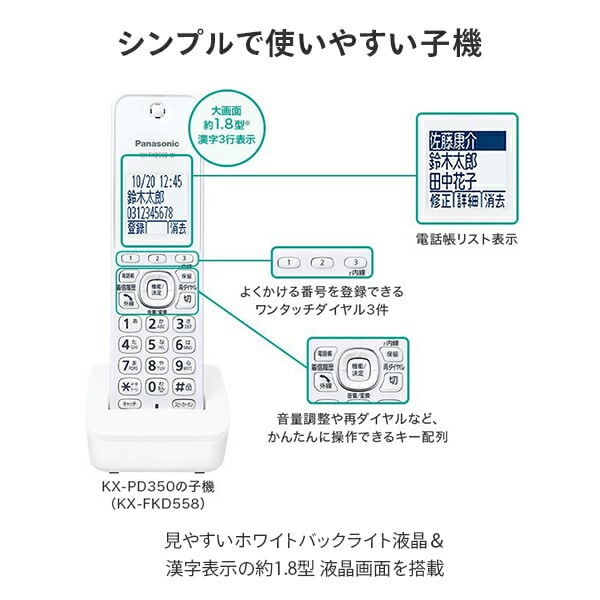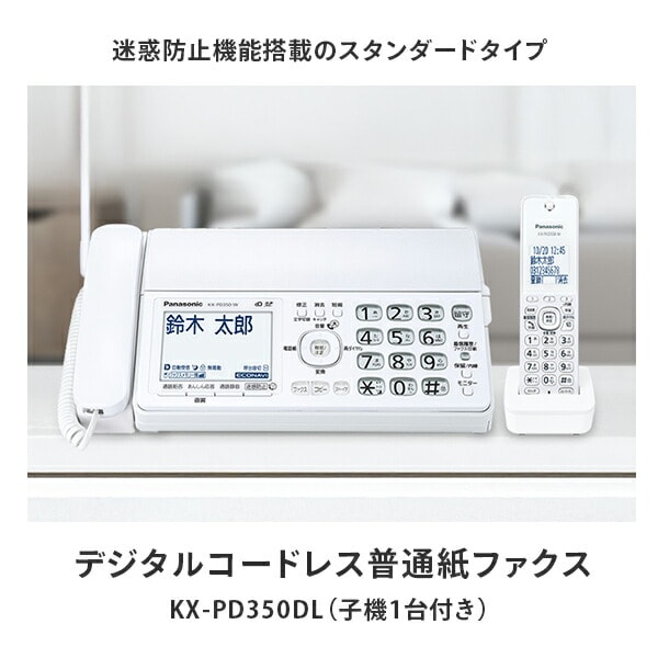 デジタル コードレス 普通紙 ファクス 子機1台付き KX-PD350DL 固定電話機 通話機 迷惑電話 通話 録音 防犯 防犯対策 詐欺対策 子機 パナソニック Panasonic 【送料無料】