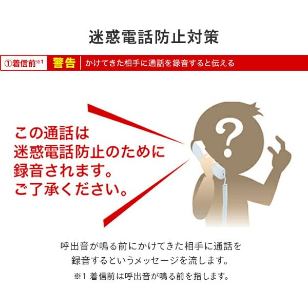●着信音が鳴る前に自動で相手にメッセージをアナウンス、「迷惑防止」機能搭載