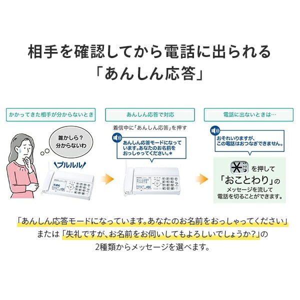 YAMAZEN ヤマゼン 山善 通販 パナソニック Panasonic コードレス電話機 固定電話 留守番電話機 電話帳 振り込め詐欺 オレオレ詐欺 給付金詐欺 撃退 着信拒否 子機 録音 自動録音 セールス 安心 保留 非通知 内線 フリーダイヤル ナンバーディスプレイ 敬老の日 老人 見守り 白 簡単 おすすめ 見やすい 大文字 大画面 高齢者向け 特殊詐欺防止 電話機 音声案内 防犯対策 受話器 通話 録音 ファックス ファクス ファクシミリ FAX 一人暮らし R5L48