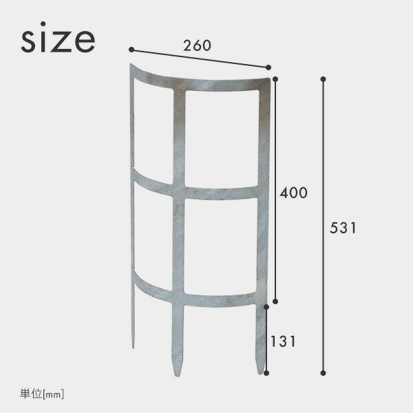 | 商品説明 | ●背丈の高い植物が倒れないようにサポートしながら、お庭を装飾するフェンス ●サビや腐食に強い溶融亜鉛メッキ加工で長く綺麗に使える ※職人が手作業で加工しているため、商品のサイズ、形状、色合いは1点ずつ異なります ※開梱設置や作業の際は必ず軍手をご着用の上、お取り扱いください ※溶融亜鉛メッキ処理により様々なメッキの表情、白い被膜、鉄板の歪み等が発生しますが製品の個体差としてご理解ください |