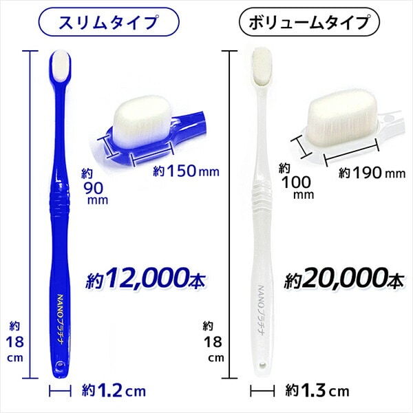 | 商品説明 | ●隅々まで磨ける柔らか超極細毛 ●裏面に舌用ブラシ付き ●NANOプラチナ粒子配合 ●抗菌・防臭加工済 ●選べる2タイプ 【ボリュームタイプ】 しっかり磨きたい人や強めにブラッシングする方に 【スリムタイプ】 女性やお子様におすすめ |