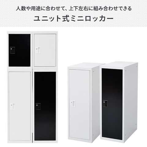 | 商品説明 | ●人数や用途に合わせて上下左右に組合せできるユニット式ミニロッカー ●背面に配線ホール付きなのでPCやスマホを庫内に収納しながら充電も可能 ●外寸:幅30 奥行50 高さ90cm ●有効内寸:幅24 奥行46.5 高さ83cm ●付属品:棚板1枚、連結ビス、ハンガーパイプ・フック1本、カギ2本 ●耐荷重:10kg(棚板1枚あたり)、5kg(ハンガーパイプ) ●扉は右開き(左右付け替え不可) ●シリンダー錠 ※最大高さ1800mmまで積み重ね可能です。 ※積み重ねて使用する場合は、必ず連結ビスを使用してください。 ※連結させる場合にはプラスドライバーが必要です。 ※高さ1350mm以上になる場合は、必ず壁面で使用し、壁固定を推奨します。(壁固定金具は付属しておりません) |