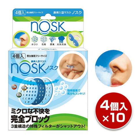 鼻挿入型 マスク nosk ノスク ノーズマスク 4個入×10箱(40個) 花粉対策 花粉症 花粉 粉塵 埃 ホコリ ハウスダスト 防塵 対策 グッズ フィルター ドリームウェア 【送料無料】