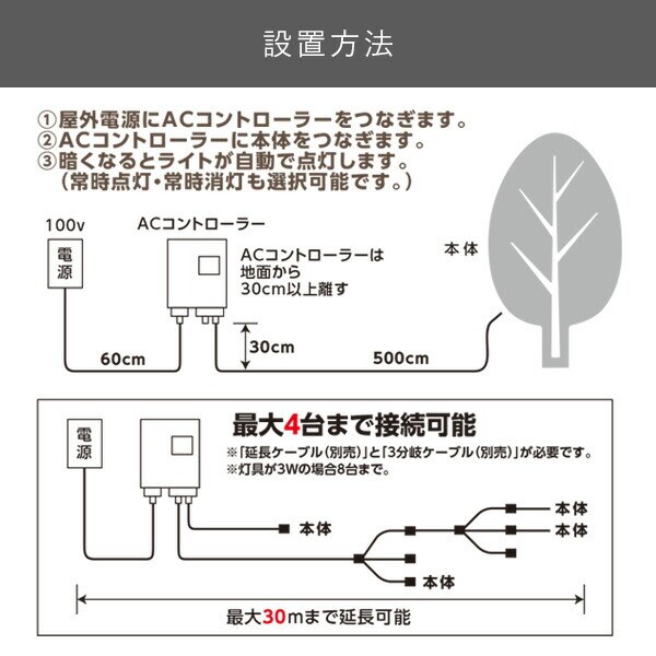 ●ACコントローラーで夜間に自動ライトアップが可能