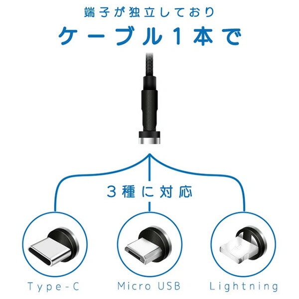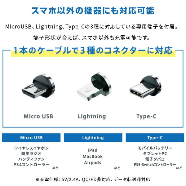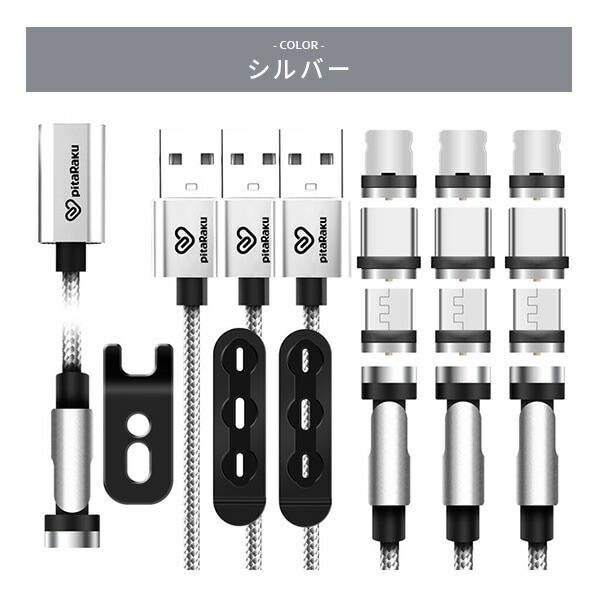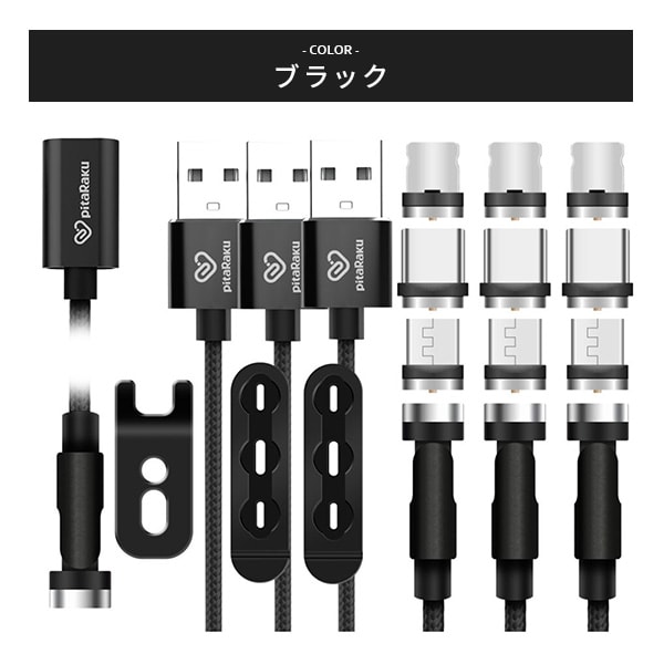 pitaRaku 魔法のスマホ充電ケーブル マグネット付き コネクター PRS-01 Type-C Lightning MicroUSB iPhone iPad Android タブレット PC パソコン ゲーム アイコス ガラケー 卓上家電 ケーブル コネクタ クマザキエイム 【送料無料】