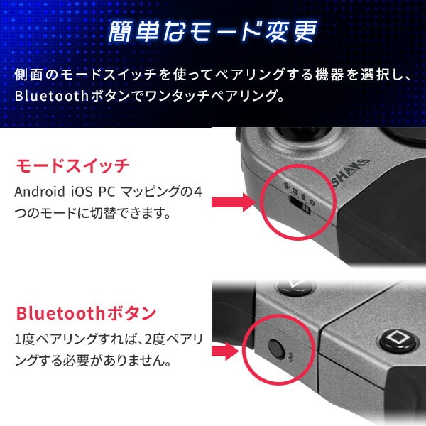 SHAKS ワイヤレスゲームパッドコントローラー X-Grip Android iPhone Windows iOS X-Cloud Stadia Geforce SHAKS-S5b XGRIP シルバー ゲームコントローラー スマホ ゲーム Android SHAKS シャークス 【送料無料】
