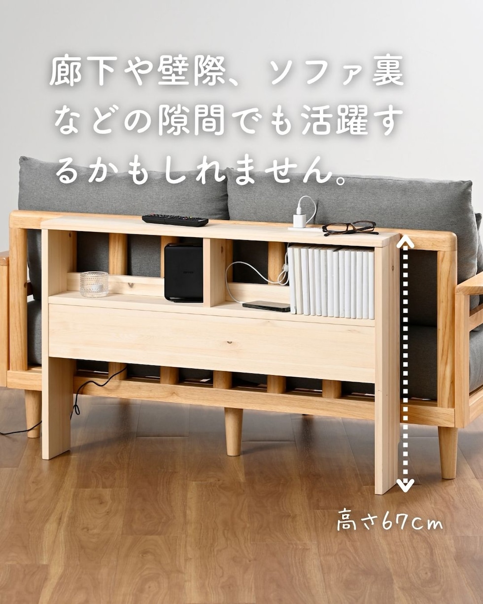 掃除がしやすい ベッド ヘッドボード 後付け コンセント付き セミシングルショート 奥行15 高さ67cm パイン材 木製 棚 宮 スリム 収納 隙間 隙間収納 すきま収納 ヘッドボードのみ 山善 YAMAZEN 【送料無料】