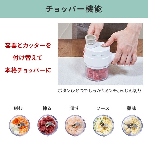 電動スライサー チョッパー 充電式 コードレス電動スライサー&チョッパー SE6910 フードスライサー ミニチョッパー 軽量 コンパクト フードプロセッサー スライス みじん切り ミンチ肉 ラララクタス LALALUCTUS 【送料無料】
