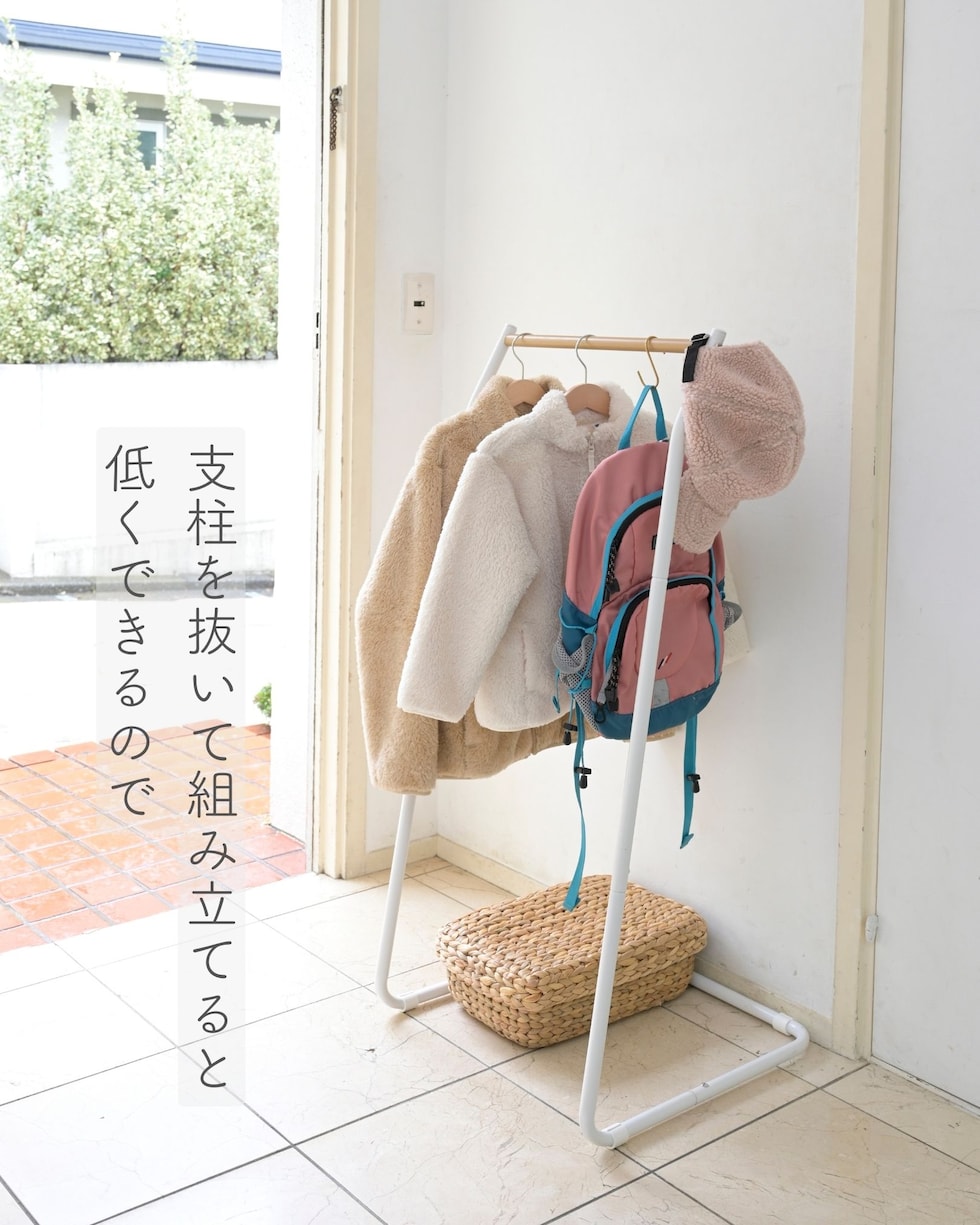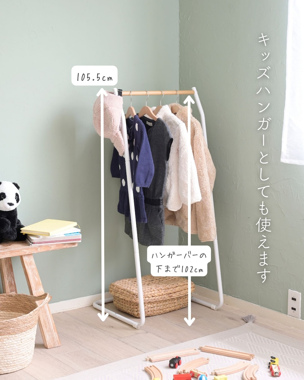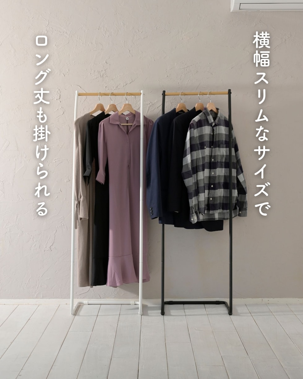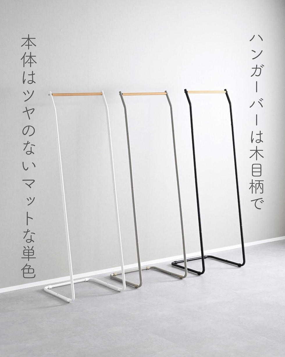 | 商品説明 | ※2025年9月よりグレージュ色が追加となります。 ●シンプルでスリムなハンガーラック ●コートやワンピールを掛けられる、ロング丈対応モデル ●玄関やリビング、寝室でも邪魔にならない質素な外観 ●軽いので使いたい場所へ移動もらくらく ●ポールを一本外してキッズハンガーとしても使用可能 ●キッズハンガー時のサイズ: 高さ約105.5cm、床からハンガーパイプ上まで104、下まで102cm ●耐荷重: 7kg ●ハンガーバー内寸: 幅41 高さ142.5cm |
