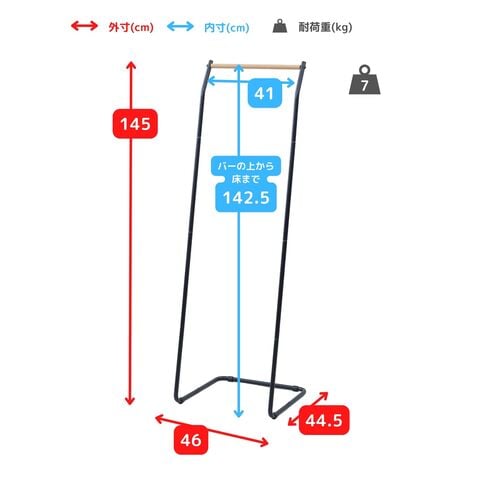 | 本体サイズ | 幅46×奥行44.5×高さ145cm 重量2.5kg |