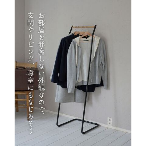L型ハンガーラック シンプル 幅46 奥行44.5 高さ145cm スリム コートハンガー 玄関 収納 寝室 リビング コート ワンピース 部屋干し 洋服 制服 ラック スチール 省スペース L字 L型 山善 YAMAZEN 【送料無料】