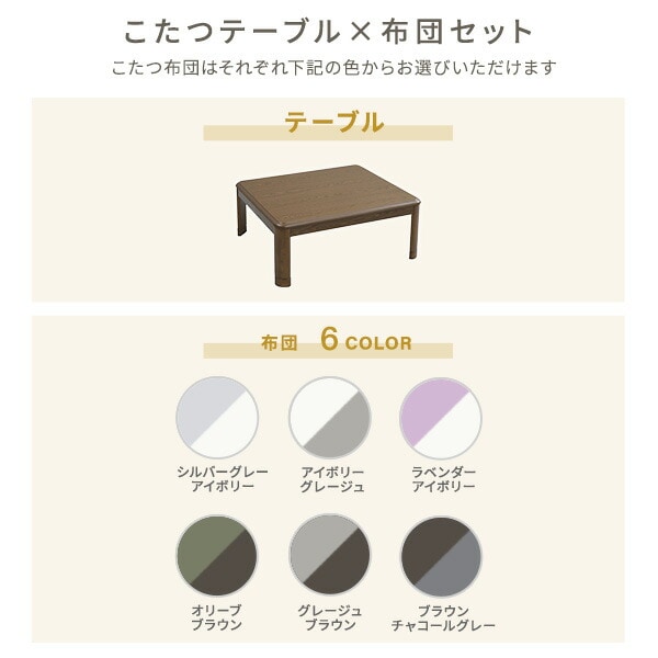 | 本体サイズ | 【こたつ本体】:幅80x奥行80x高さ36-41cm 【こたつ布団】:185x185cm |
