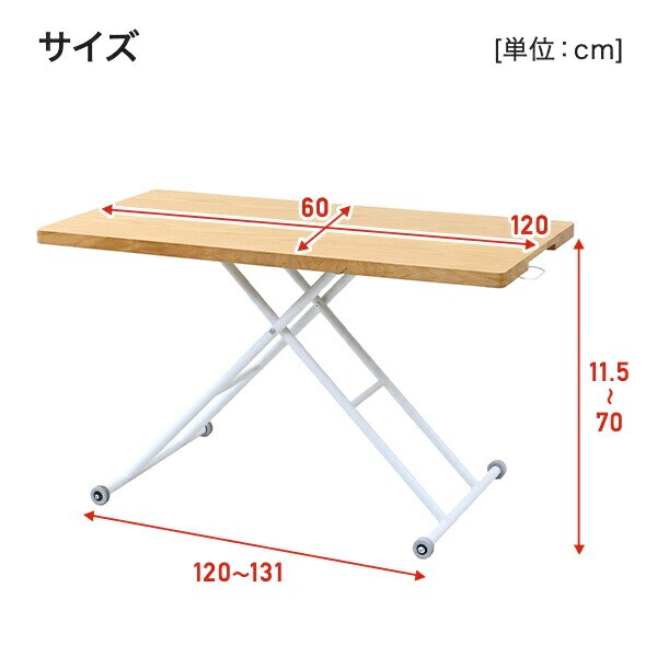 | 本体サイズ | 幅120-131×奥行60×高さ11.5-70cm 重量15.5kg |