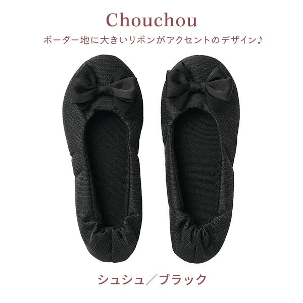 | 商品説明 | ●折りたたみ式の携帯スリッパ ●洗濯機で丸洗い可能 ●シューズ裏面にはすべり止め付き ●持ち運びに便利な巾着付き ●学校行事やオフィス、旅先など様々なシーンで活躍 ※こちらの商品は、2024年12月11日よりシェリ/ブラック、ペティーユ/ブラック/、シュシュ/ブラックを追加しております |