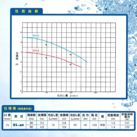 | TERADA 寺田ポンプ ファミリーポンプ 水中ポンプ 口径15mm 50/60Hz共用 コンパクトサイズ SL-40 |