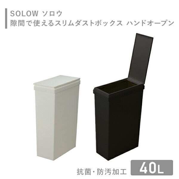 SOLOW ソロウ ゴミ箱 隙間で使えるスリムダストボックス ハンドオープン 40L GSLW031/GSLW032 ごみ箱 ダストボックス くず入れ 屑入れ 蓋付き ふた付き 角型 コンパクト 薄型 隙間 分別 リス RISU 【送料無料】