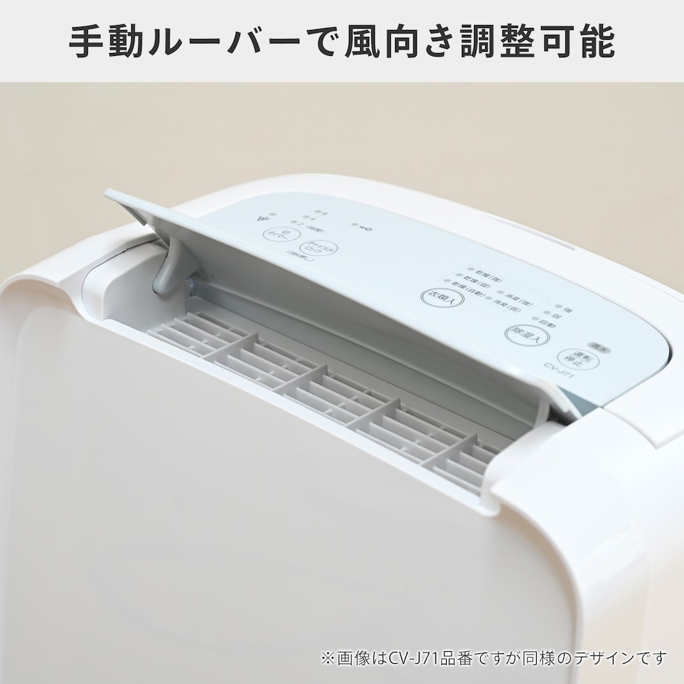 | 商品説明 | ●梅雨・夏に強いコンプレッサー方式 ●狭いスペースでの部屋干しに ●除湿能力:7.1L/日(60Hz)/6.3L/日(50Hz)衣類乾燥時間(2kg):約167分 ●除湿可能面積の目安:8-16畳/(50Hz),9-18畳/(60Hz) ●スイングルーバー:手動 ●タイマー:切タイマー(2/4/6時間) ●チャイルドロック付き ●プラズマクラスター7000 ※2026年3月より型番をCV-S71-W→CV-T71-Wに変更しております。仕様変更点はございません |