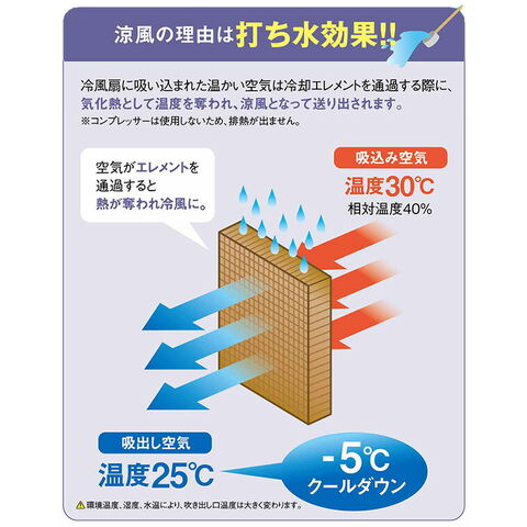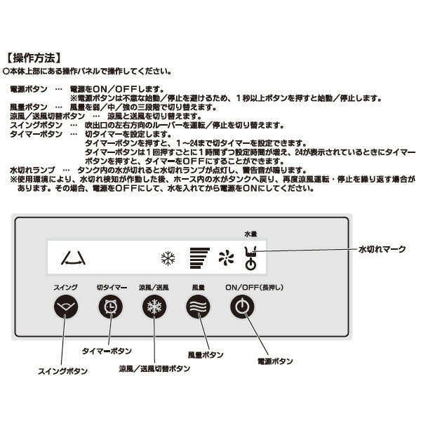 | 商品説明 | ●電源:単相100V 50/60Hz ●消費電力:50Hz(320W)/60Hz(380W) ●最大風速(m/min):50Hz(370m/min)/60Hz(380m/min) ●風量:50Hz(110立方メートル)/60Hz(125立方メートル) ●ファン:樹脂製4枚羽根(約460mm) ●給水方式:貯水式・水道直結式 ●水蒸発量(L/h):50Hz(約7L/h)/60Hz(約8L/h) ●タンク容量(L):約60L ●満タン時連続使用時間(時間):50Hz(約6時間)/60Hz(約5時間) ●風量切り替え:3段階(弱・中・強) ●安全装置:水切れ検知・モーターサーマルプロテクター・電流ヒューズ ●電源コード:HVCTF 0.75平方ミリメートル×2芯 長さ3m ●騒音値(dB):約58dB ●使用範囲目安:30~50平方メートル ●吹き出し方向(ルーバー向き):上下手動・左右自動(約50度) ●付属品:本体側給水口コネクタ×1、取り扱い説明書×1、保証書×1 ●気化熱の原理を利用した大型冷風扇 ●体に優しく、電気代も安い。熱中症対策に貢献 ●工場、倉庫、ビアガーデン、競技場、商店街、動物園、遊園地等々、使用場所のバリエーションも豊富 ●排熱がなく、屋内にも設置可能 ●取り付け工事不要 ●ストッパー付自在キャスターで移動も簡単 ●保証期間:1年間 |