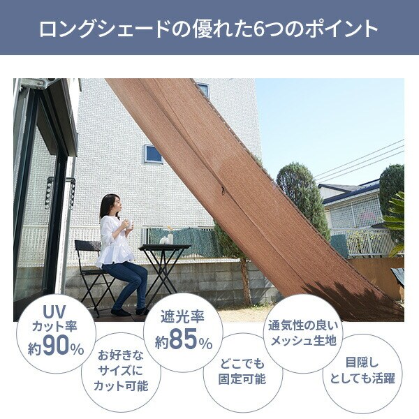 お好きな長さに切れる お徳用ロングシェード 日よけ 目隠し バルコニーシェード 1×12m YRGS-10120 ブラウン 涼風シェード 日除けシェード オーニング サンシェード おしゃれ ベランダ 庭 ベランダ 山善 YAMAZEN 【送料無料】のレビュー