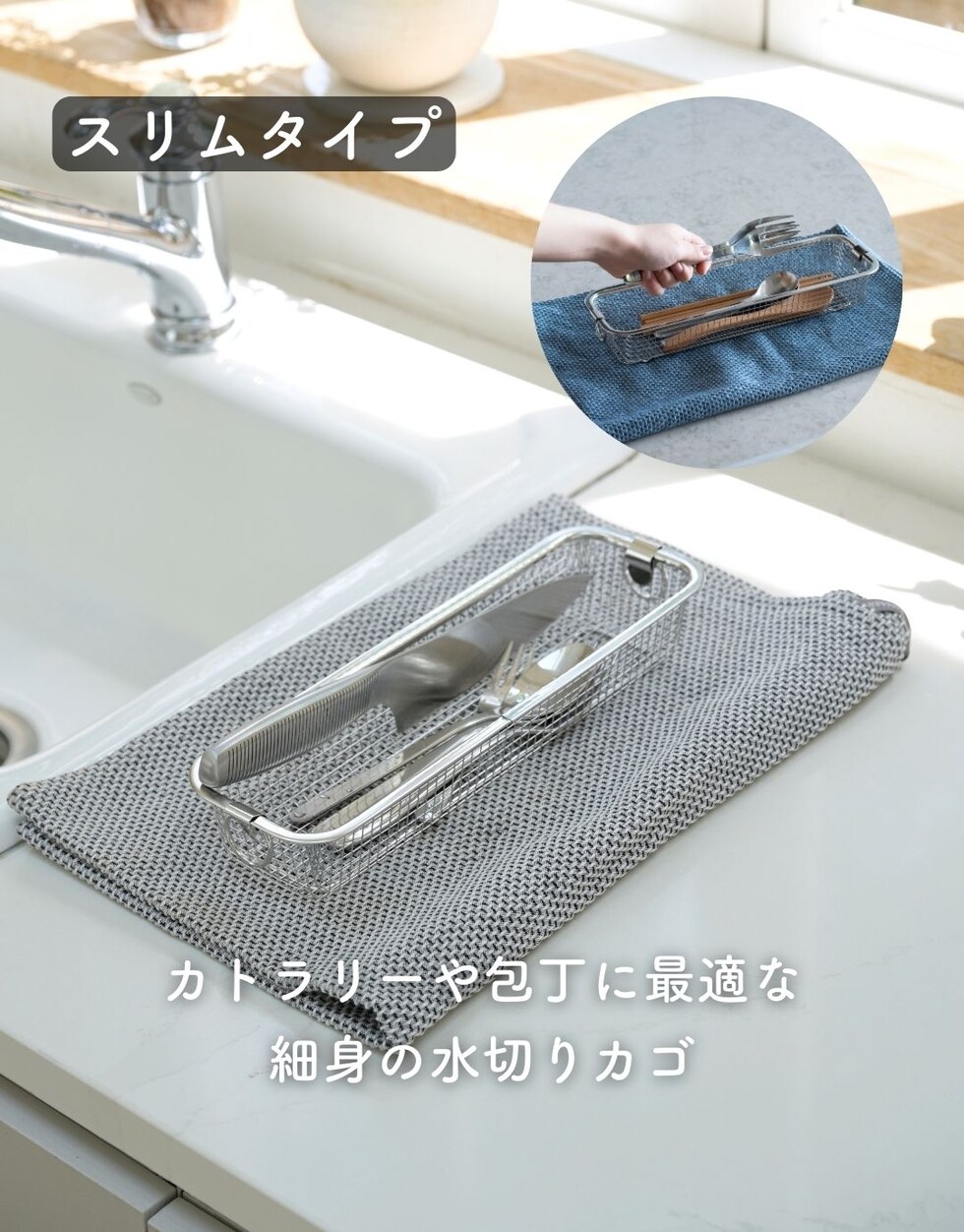 水切りかご 食洗機対応 ステンレス スリム カトラリー 水切り 水切りカゴ コンパクト 水切りラック ザル ざる キッチン 収納 台所 シンプル すっきり暮らす 燕三条 日本製 ビーワーススタイル 【送料無料】